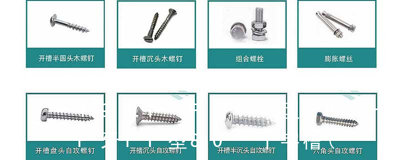 主要分類包括普通螺絲、機螺絲、自攻螺絲和膨脹螺絲三種。 有頭螺釘Cap screw 過去限于全牙的扣件。 六角頭螺釘Hex cap screw與大六角螺栓Hex bolt 顧名思義為頭部為六角型的外螺紋扣件,設計為使用扳手轉動。依照ASME B18.2.1標準,六 自攻螺釘選用通常的規則:自攻為4個螺距,機械螺釘為3個螺距,這是最小的旋合長度,按照實驗的條件會有所加長。每一個自攻螺釘都是由頭部、桿部和桿部末端三部分組成的。每一個自攻螺釘的構成都有四大要素:頭部形狀、扳