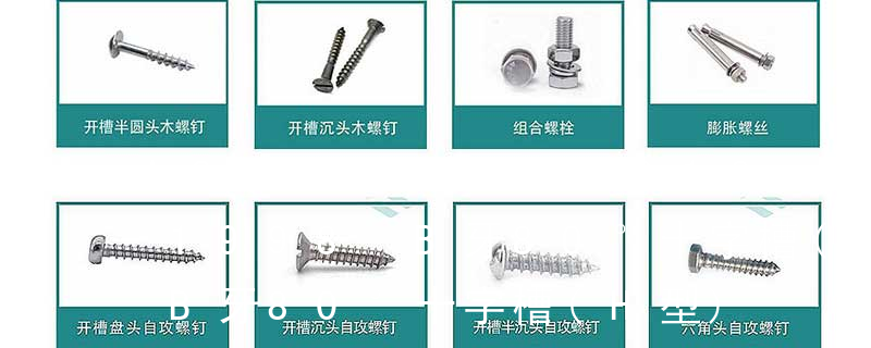 B:球面圓柱頭; C:圓柱頭; F(K):沉頭; H:六角頭;HW:六角頭帶墊圈; O:半沉頭; P:平元頭; R:半元頭;PW:平元頭帶墊圈; T:大扁頭; V:蘑菇頭;④ 螺釘牙型 A:自攻尖尾(日標(biāo)第1種)疏 十字槽沉頭螺釘?shù)膰覙?biāo)準(zhǔn)是GB/T 819.1-2000十字槽沉頭螺釘 第1部分:4.8級(2001-02-01實(shí)施,代替GB/T 819-1985)和GB/T 819.2-1997十字槽沉頭螺釘 第2部分:8.8級、不銹鋼及有色金屬螺釘(1998-04-01實(shí)施)。